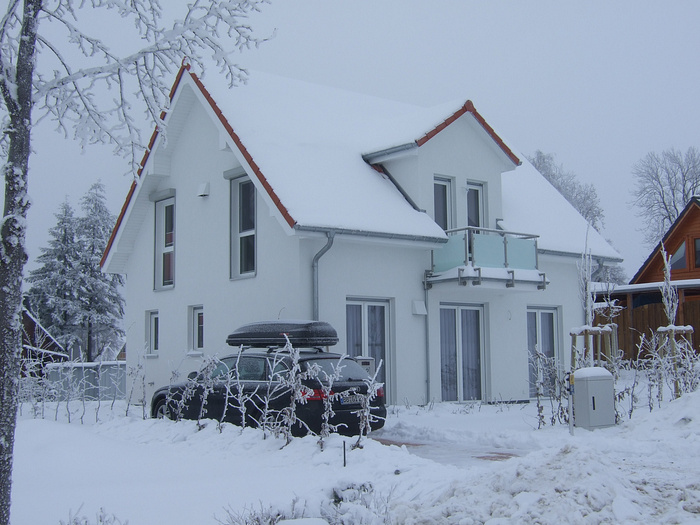 Die in jedem Raum separat steuerbare Fußbodenheizung sowohl im EG als auch im OG trägt zum Wohlbefinden in der kalten Jahreszeit bei. Im Ferienhaus befindet sich eine automatische Lüftungsanlage mit Wärmerückgewinnung, die individuell regulierbar ist. Ein Gaskamin sorgt für wohlige Wärme.