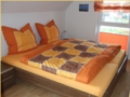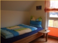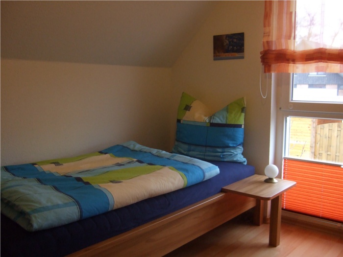 Das 1. Schlafzimmer ist mit einem Doppelbett und einem großen Kleiderschrank ausgestattet. Von dort und vom Bad im OG können Sie den Fleesensee sehen.