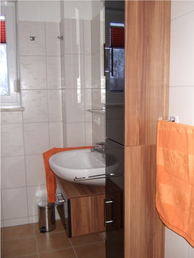 Das Bad im EG ist mit Dusche und WC ausgestattet. Mehrere Badezimmerschränke können Ihre Kosmetikartikel und Badeutensilien problemlos aufnehmen.