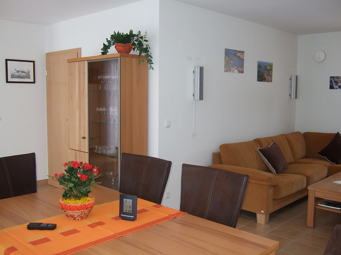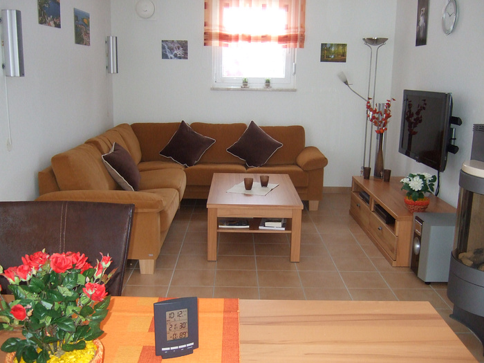 Im gemütlich eingerichteten Wohnzimmer erwartet Sie HD-SAT-TV, DVD/Blu-Ray-Player und eine Heimkinoanlage mit Surround Sound.